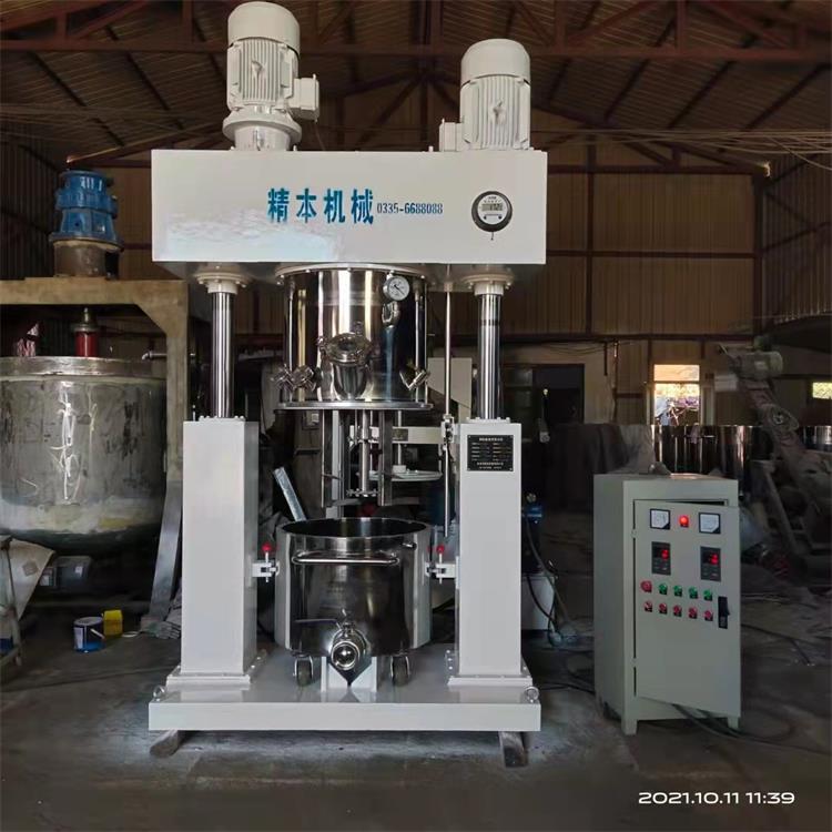 雙行星攪拌機(jī)根據(jù)行星運(yùn)動軌跡設(shè)計(jì),攪拌結(jié)構(gòu)有低速攪拌器、高速攪拌器、以及相應(yīng)的刮板裝置組合而成。雙行星攪拌機(jī)的雙組低速攪拌器自轉(zhuǎn)的同時繞著軸心進(jìn)行公轉(zhuǎn),而且低速攪拌器的形式根據(jù)不同的物料粘度和生產(chǎn)工藝選擇不同的攪拌形式,常見的攪拌形式包括槳葉式、麻花式、爪式、框式等結(jié)構(gòu),具備良好的混合、反應(yīng)、捏合、溶解的作用;高速分散器由多層具備極高線速度的鋸齒狀分散盤組成,它同樣在高速自轉(zhuǎn)的同時繞著軸心進(jìn)行公轉(zhuǎn),能夠?qū)⒎哿希ㄖ鷦┛焖俚姆稚⒌綕{料里,具備很強(qiáng)的分散作用;刮板裝置根據(jù)客戶實(shí)際的生產(chǎn)工況選配。